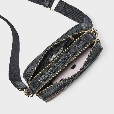 Elevate your everyday look with the Universal Thread™ Double Zip Camera Crossbody Handbag. Part of the exclusive Universal Thread collection, this bag is designed for those who value both aesthetic appeal and practical organization. Whether you are capturing memories on the go or simply need a compact accessory for your daily essentials, this crossbody offers the perfect blend of modern style and utility.
