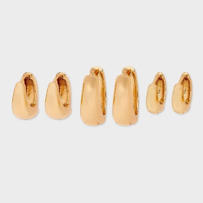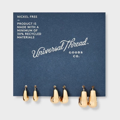 Elevate your everyday jewelry collection with the timeless elegance of the Universal Thread™ Huggie Hoop Earring Set. This curated three-piece set offers a sophisticated gold-finish look that seamlessly transitions from casual daywear to evening glamour, ensuring you always have the perfect accessory for any occasion.