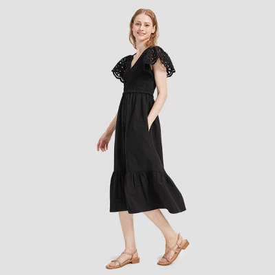 Step out in style with the Universal Thread™ Flutter Short Sleeve Midi A-Line Dress. Designed for the modern woman who values both comfort and sophistication, this black midi dress is the perfect choice for everything from weekend brunch to intimate dinner dates. Its timeless A-line silhouette and thoughtful design details make it a versatile staple for any season.