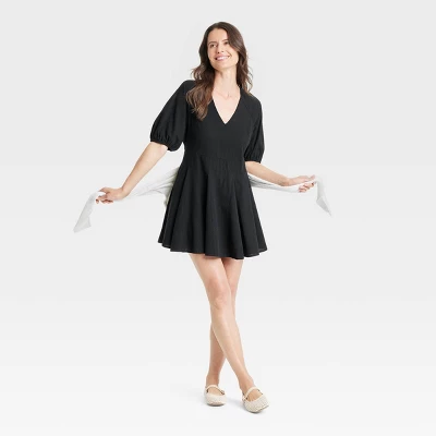 Make a fashion-forward choice with this Bell-Elbow Sleeve Mini A-Line Dress from Universal Thread™. Made from cotton-rayon blend fabric, this mini A-line dress provides a comfortable fit throughout your day. Featuring a flattering V-neckline, this pullover dress is designed with bell elbow sleeves for an elegant touch. Pair it with your favorite shoes and accessories for a chic look for any occasion.